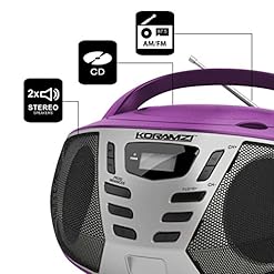 KORAMZI Sports Portable CD Boombox AM/FM Radio, AUX in, Top Loading CD Player, Telescopic Antenna, LCD Display for Indoor & Outdoor, Offices, Home, Picnics, School, Camping (Purple/Silver) CD55-PLS