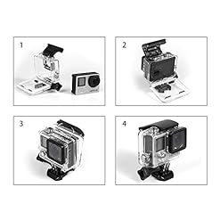 This brand new and Top of the range transparent waterproof housing case is specially designed for GoPro Hero 4/3+ outside sports camera. It is made of Top of the range transparent material, providing safe protection to your GoPro Hero 3+/4 outside sports camera, which is ideal for diving, surfing, snorkeling and other water sports activities.