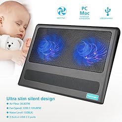 This laptop cooling pad is conveniently powered by the USB port on your computer, with no power adapter needed. It offers an additional USB port so that you can connect other devices.