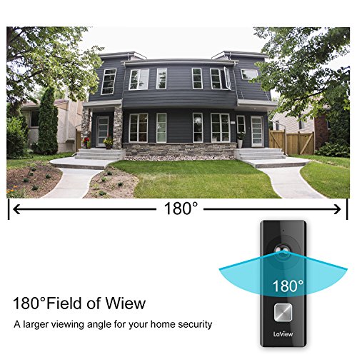 【Enjoy 180° Viewing Angle Field】 This WiFi doorbell camera provides wider viewing angle with 180° coverage, you’ll see a ultra-wide window to front doorstep so you could stay connected to your home security from wherever you can be. Reliable WiFi connection is easily to access your doorbell camera with mobile App “LaView Connect ” on iPhone or Android smartphone.