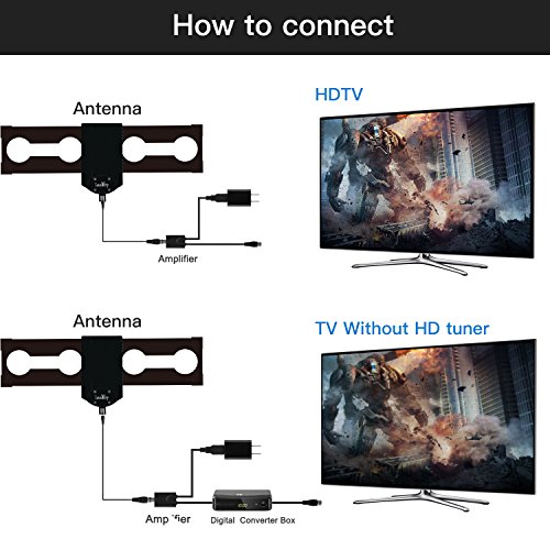 ➤[WIDE RANGE ] High reception for 150 miles range, the antenna works frequency VHF47~240MHz, UHF 470~862MHz. V.S.W.R.: ≤2 Typical Antenna Gain:32dBi with amplifier. With 30FT cable, you’ll be able to put it both indoor and outdoor. *** This is an amplified TV antenna. If a signal cannot be received with the external amplifier, remove the antenna amplifier and take a look at again.