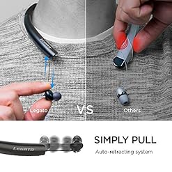 [AUTO-RETRACTION] Auto-retraction technology is patented by Legato. This retractable system provides quickly and easily safe earbuds without on the lookout for earbud placement or retraction button. The auto-retractable system provides not only securing earbuds conveniently, but it ensures users look neat and clean by eliminating the wire twist and dangle/swing