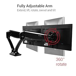 5. A couple of configurations: provide the freedom to place your displays side-by-side, spread apart, back to back or anywhere in between. For viewing longer pages or blocks of code without scrolling, the arm also supports landscape to portrait display rotation for either monitor.