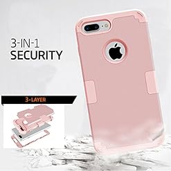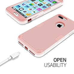 LONTECT iPhone 7 Plus Case Hybrid Heavy Duty Shockproof Full-Body Protective Case with Dual Layer [Hard PC+ Soft Silicone] Impact Protection for Apple iPhone 7 Plus – Rose Gold