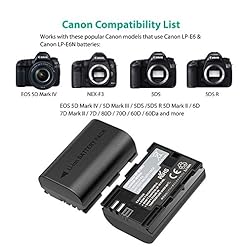 Diverse Compatibility: Works with these popular Canon models that use LP-E6 & LP-E6N batteries: EOS 5D Mark IV / 5D Mark III / 5DS / 5DS R / 5D Mark II / 6D / 7D Mark II / 7D / 80D / 70D / 60D / 60Da