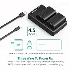 Three How you can Power Up: Unlike standard chargers with only one way to recharge Nikon batteries, RAVPower features wall, car, and power bank charging for added convenience. Note: All three chargers sold one after the other