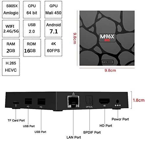 M96X Android 7.1 TV Box 2GB RAM 16GB ROM Dual Band Wifi 5G/2.4G Quad Core Amlogic S905X with Bluetooth Mini PC Smart Player True 4K Playing