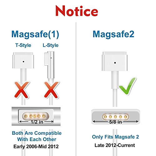 Replacement charger AC adapter for Apple MacBook Air 11″ 13″ inch from End 2012 ;Compatible only with MacBook Air (11-inch, Early 2015) ; MacBook Air (13-inch, Early 2015) ; MacBook Air (11-inch, Early 2014) ; MacBook Air (13-inch, Early 2014) ; MacBook Air (11-inch, Mid 2013) ; MacBook Air (13-inch, Mid 2013) ; MacBook Air (11-inch, Mid 2012) ; MacBook Air (13-inch, Mid 2012)