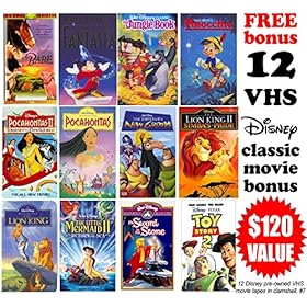 MOVIE BONUS: features a choice of 12 pre-owned Disney classic movie VHS tapes for children – Babe, Fantasia, Jungle Book, Pinocchio, Pocahontas II Journey to a New World, Pocahontas, The Emperors New Groove, The Lion King II Simba’s Pride, The Lion King, The Little Mermaid II Return to the Sea, The Sword within the Stone, Toy Story 2