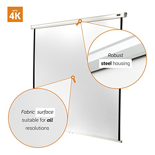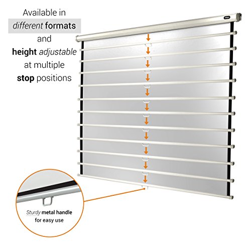 Pull down projector screen is hight adjustable: suitable for different aspect ratios (1:1, 4:3, 16:9 formats)