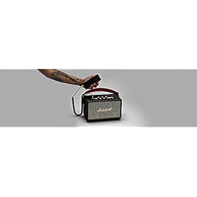 Marshall Kilburn Portable Bluetooth Speaker: Concentrate in your favorite music at the go with this portable speaker, which includes a Bluetooth interface with aptX technology for easy wireless pairing with so much Bluetooth-enabled devices. Revel in wealthy cross-spectrum sound with a bass-reflex system that creates booming low-end tones.