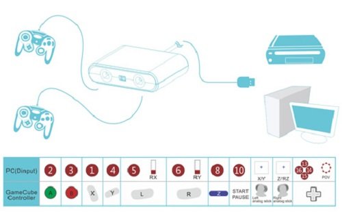 The GameCube controller adapter allows you to connect up to two GameCube controllers (or wireless GameCube controllers) to a Wii u system, PC USB, Switch