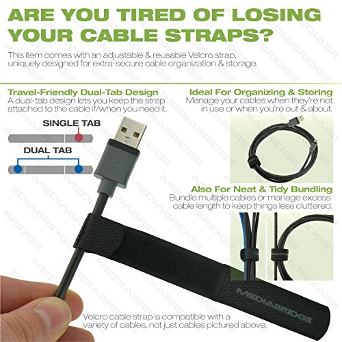 Other complementary MediabridgeTM products: Right Angle F Connectors (Item# B00H7KD4T0) and F81 Splice Connectors (Item# B00HFYGQHU). Includes adjustable & reusable Velcro cable strap for simple organization & storage.