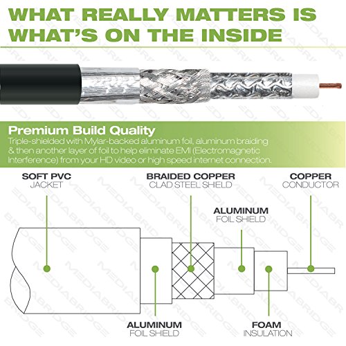 Media bridge coaxial digital audio/video cable provides a connection for TV’s, vcr’s, cable modems, satellite receivers, off-air antennas & other coaxial F-pin enabled devices. Enjoy a crisp signal without electromagnetic & radio frequency interference. Featuring 2 male Nickel F-type connectors, this 75 Ohm RG6 cable houses a copper clad center conductor, dielectric insulation & 3 layers of aluminum shielding. Its durable build preserves signal quality & still manages to take up only minimal wall space, with its soft & flexible external jacket. Includes easy grip connector caps for effortless connector tightening/loosening, relatively than straining oneself with additional tools. This cable is suitable for both indoor & outside use. Product Features – connects a TV, VCR, cable modem, satellite receiver, off-air antenna & more – 75 Ohm RG6 cable with Nickel F-type connectors – clear picture & sound without the hum/static of RF & EM interference – copper clad center conductor, dielectric insulation, braided aluminum shielding, & 2 layers of aluminum foil shielding – includes removable easy grip caps for effortless installs – suitable for indoor & outside use, with a durable, yet flexible jacket compatibility devices with F-type ports, like a cable box, TV, satellite receiver, VCR, cable modem, off-air antenna & more installation plug-&-play: in a position to make use of, once every end is attached to its respective port on a compatible device notes even as connected to an F-type port, simply twist the easy grip caps like you may a Screwdriver, to tighten/loosen the cable’s hold package contents – 1 x coaxial digital a/V cable – 2 x easy grip caps