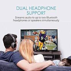 Streams audio to as much as two Bluetooth headphones or speakers concurrently