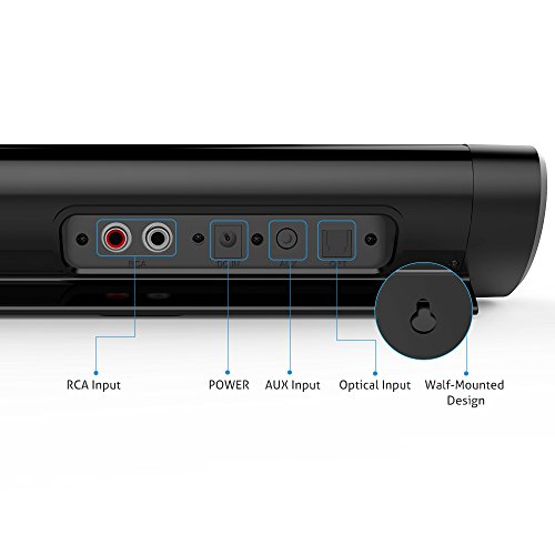 THE PACKAGE INCLUDES: 41″ Soundbar, Power adaptor, 3.5mm aux Cables, Optical Cable, RCA cable, Remote, Quick start guide, User Manual, customer-service card. Worry-free 18-month warranty and friendly customer service