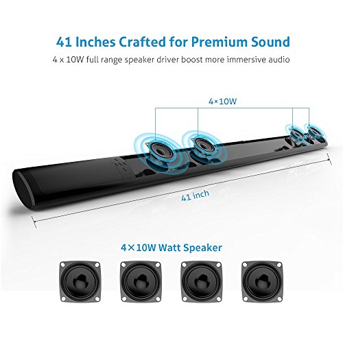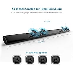 41-INCH 40WATT Sound bars for TV: Deep bass performance with virtually no distortion, compelling surround effects for theater-like sound. With integrated dsp ( movie/music/news ) technology for amazing clarity and precision