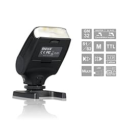 Functions: * High GN: 32 * Reinforce TTL * Reinforce Manual Flash (S1/S2 mode) * Reinforce Stroboscopic mode * Adjustable Tilt & Swivel Head * LCD Lattice screen * LED-Assistive preview center of attention * Metal hot shoe Specification: Manual: 1/1-1/128(±1/3 increments) Repeating flash: 1-199HZ Exposure compensation: one-third-stop increments ±3 files Own master mode , can wireless keep an eye on meike series slave flash Power Supply: 2 AA alkaline batteries or AA NI-MH battery Flash Index: 32 (105 mm focal length; ISO:100meters) Flash Mode: TTL/M/S1/S2/RPT/ remote keep an eye on flashlight Up-Down Rotation Angle:-7°(Down)~90°(Up) Left-Right Rotation Angle:150° Batter Flashes: one hundred-1500 flashes (For AA alkaline batteries ) Recycle time: About 5s (For AA battery ) Color temperature: 5600K Light Sensing Distance: Indoor 15m, out of doors 10m Weight: About 150g (Flashlight only, batteries no longer included) Sie:110(L)*65(W)*36(H)mm Package Including: * 1 x MK-320 * 1 x Diffuser for MK-320 * 1 x Flash Stand * 1 x Manual