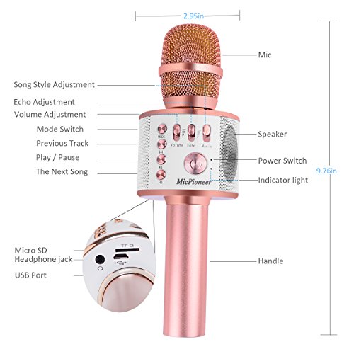 ♫ 3 IN 1 MULTIFUNCTION MICROPHONE — Micpioneer Karaoke Microphone is a wired,wireless and speaker 3 in 1 multifunction microphone,it can easily connect with iPhone/iPad/Android/Tablet and PC with over 32.8 ft long connecting distance. Perfect for KTV singing, gathering singing, family singing, commute singing, car stereo, instrument recording, interviews, speaking, live, ect.
