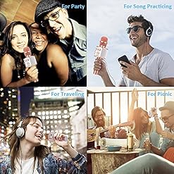 ♫ LONGER AND WIDER USING EXPERIENCE — Built-in 2200mAh strong battery,service time up to 4-8 hours,enjoy your music without worries,Fortify External TF Card Max to 64GB(NOT INCLUDED) ,You’ll be able to play music and sing without a smartphone!