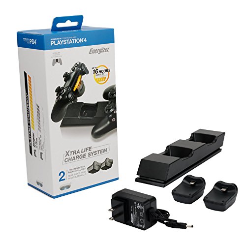 Charging station comes with an AC adapter and 2 Energizer Rechargeable Lithium Batteries for up to 16 hours of playtime