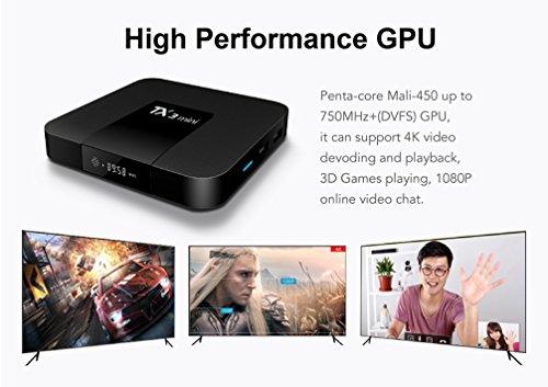 [2017 NEW MODEL]: TX3 MINI Television Box come with the latest advanced amlogic S905W Quad Core ARM Cortex-A53 CPU up to 2GHz Ultra high frequency,the Mali-450 penta-core up to 750MHz+(DVFS) GPU. Provides you with ultra-fast running speed and professional image processing ability, make stronger 4K video devoding and playback, 3D games playing and 1080P online video chat.