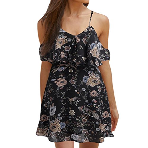 MOKAO Women Casual Beach Dress Short Strap Mini Dress V Neck Halter Floral Print Backless Maxi Skirt