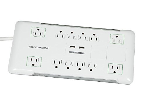 Monoprice 109203 12 Outlet Power Surge Protector with 2 Built-In USB Charger Ports, 4230 Joules