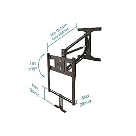 The spring-assisted mount allows you to effortlessly pull the TV forward and down to a comfortable viewing position, where you’ll be able to sit down on the sofa without craning your neck upward