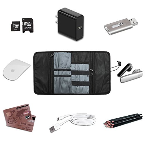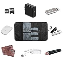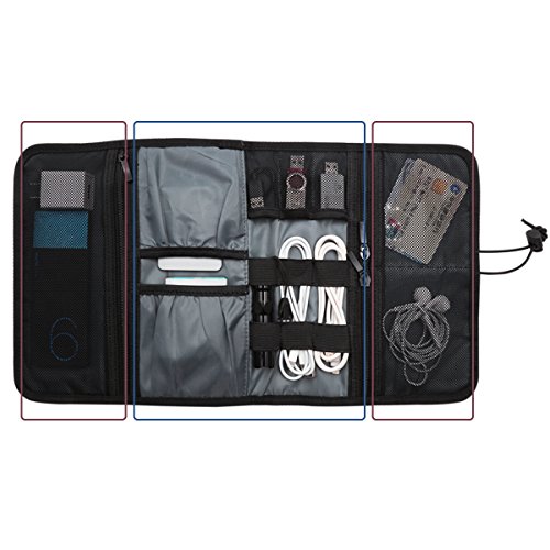 Provides great flexibility for organising your devices. 6 elastic loops for cables, pens, brushes and tools, and the like; 3 mesh pockets for USB, SD card, SIM card or other small items ; 2 open pockets for charger, mouse, power adapter and and the like.