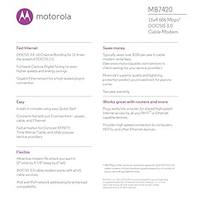 Motorola DOCSIS 3.0 16×4 Cable Modem Certified for Comcast XFINITY, Time Warner Cable, Cox, BrightHouse (MB7420)