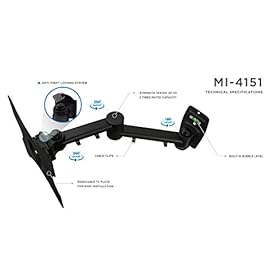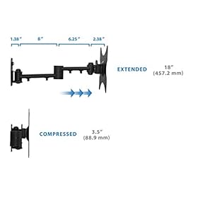 This mount provides 18″ of extension and collapses to 3.4″ from the wall.