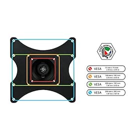 In particular, it fits VESA 75×75, 100×100, 200×100, 200×200. In case you are unfamiliar with VESA patterns, these are square or rectangular patterns between 3 and 16 inches per side.