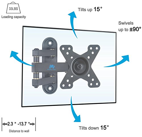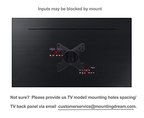 Fits for most of 10-26″ TVs and monitors as much as 33 LBS, with max VESA/mounting holes spacing of 100 x 100mm. Our mounts are tested with 4 times loading weight claimed. Images on left side will allow you to see if this mount perfectly fits your device in the aspects: VESA, stud location and conceivable blocked inputs. Not perfect? You’ll be able to check other Mounting Dream mounts for BEST options.