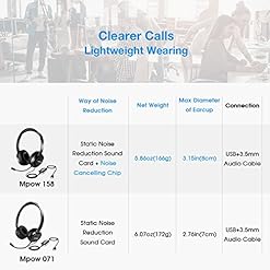 LIGHTWEIGHT WEARING COMFORT — Have Bigger Earmuffs than most of the usb headsets in the market. Weigh 5.86oz (166g), lighter than Mpow 071. Made with super-soft leatherette head and ear cushioning. The adjustable headband and microphone boom-arm let you find the perfect fit