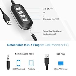 USB PLUG/3.5mm JACK OPTIONS — Mpow adopts 2-in-1 detachable plug in order to achieve wider compatibility. Detachable 3.5mm audio jack can be used separately for cellphone, tablet and PC, or used with the USB plug to obtain optimal sonic experience for desktop and laptop