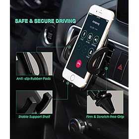 SUPER SECURE BASE: The top of the range rubber construction of the base guarantees the base will solidly hold the mount regardless of road vibrations or impacts. Our air vent universal car mount holder is much easier to use than others as a result of its simple and complementary design.