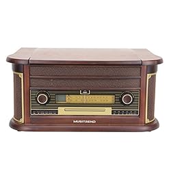 Musitrend Unfashionable Vinyl Record Player 7-in-1 Nostalgic Turntable with Bluetooth, USB encoding, Cassette, CD, AM/FM radio, Remote, Mahogany