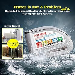 ▶Make Thieves’Lost’: MysBiker Alarm Disc Lock-Silver Knight is a practical solution for bikers to give protection to their beloved motorbikes or bikes at the same time as parking outside or at home.Up to 110 decibel alarm will automatically activate upon sensing any vibration or shock,keeps your belongings protected and sound.
