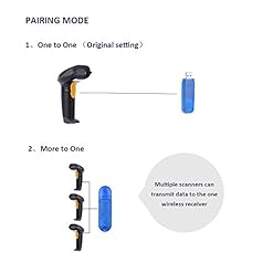 Two paring mode: One-to-one mode,More-to-one mode. At one-to-one mode,one scanner only transmit barcode to the one usb receiver. AT More-to-one mode,More than one scanners can transmit barcode to the one usb receiver – ideal in a warehouse where several people are scanning at once.