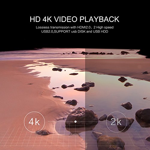 Support 4K: Supporting up to UHD 4k*2k H.265 60fps HW decoding and 3D, you can enjoy 4K and 3D video smoothly and clearly. Built-in WIFI and LAN, HD port, USB 2.0.