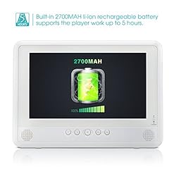 Built-in rechargeable 2700mAh Lithium battery: the DVD Player comes with large capacity li-ion battery, and supports the player running as much as 5 HOURS. Warning: please take out the card at the DVD drive lens before playerback
