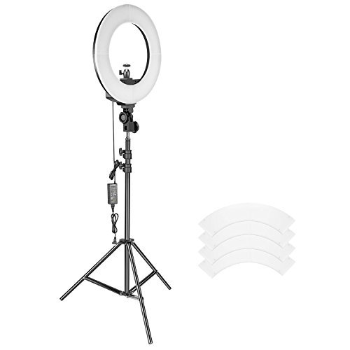 KIT INCLUDES: (1) 18 inches outer Bi-color 55W 252 Pieces Dimmable LED SMD Ring Light;(1) 3-6.5 feet/ 92-200 centimeters Adjustable Light Stand; (1)Ball Head Hot Shoe Adapter; (4)White Plastic Filters; (1)US Plug; Note: Camera, Flash and LED Panel aren’t included