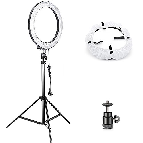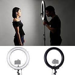 Kit includes: (1)18 inches/46 centimeters 75W (600W Similar ) Dimmable Ring Fluorescent Flash Light+(1)Diffuser Soft Box+(1)Adjustable 75 inches/190 centimeters Light Stand+(1)Ball Head Hot Shoe Adapter+(1)Carrying Case. Note: The camera and flash don’t seem to be included