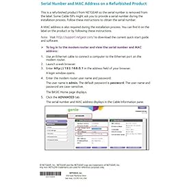 “Netgear Refurbished product may have a got rid of serial number. It is very important state the product is refurbished (state the full part number) if emailing customer reinforce. See the attached (image) flyer to obtain the Serial Number and MAC Address information that perhaps needed by your Cable provider before contacting them.”
