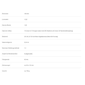 Nano-Crystal coat and ED glass elements that enhance overall image quality by further reducing flare and chromatic aberrations