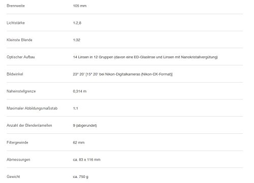 Features new VR II vibration reduction technology, Focal Length : 105 mm, Minimum Focus Distance : 1.0 ft.( 0.314 m)