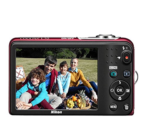 A compact and convenient point-and-shoot for on a regular basis shooting, the red COOLPIX L32 from Nikon offers a versatile range of imaging capabilities for a slim, pocketable form factor. Revolving around a 20.1MP 1/2.3″ CCD image sensor , the L32 produces high-resolution stills at the side of HD 720p video, and offers a sensitivity range of ISO 80-1600 for working in low-light conditions. A NIKKOR 5x optical zoom covers a 26-130mm equivalent focal length range, and is benefitted by Electronic VR to minimize the appearance of camera shake. Additionally, the camera also comprises a 3.0″ 230k-dot LCD monitor for composing and reviewing imagery, and a host of Quick Effects and the Smart Portrait System will let you creatively refine the look of images in-camera.