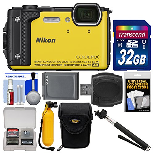 [1] Nikon Coolpix W300 4K Wi-Fi Shock & Water-proof Digital Camera (Yellow) + [2] Transcend 32GB SDHC 300x Card +
