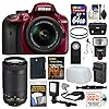 [1] Nikon D3400 Digital SLR Camera & 18-55mm VR DX AF-P Zoom Lens (Red) + [2] Nikon 70-300mm DX AF-P Lens + [3] Nikon Digital SLR Camera Case + [4] Transcend 64GB SDXC 300x Card +